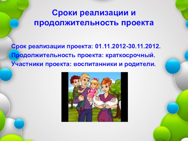Слайд 2Сроки реализации и продолжительность проекта