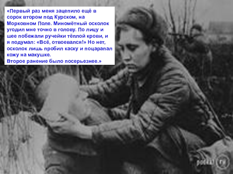 Слайд 18«Первый раз меня зацепило ещё в сорок втором под Курском, на