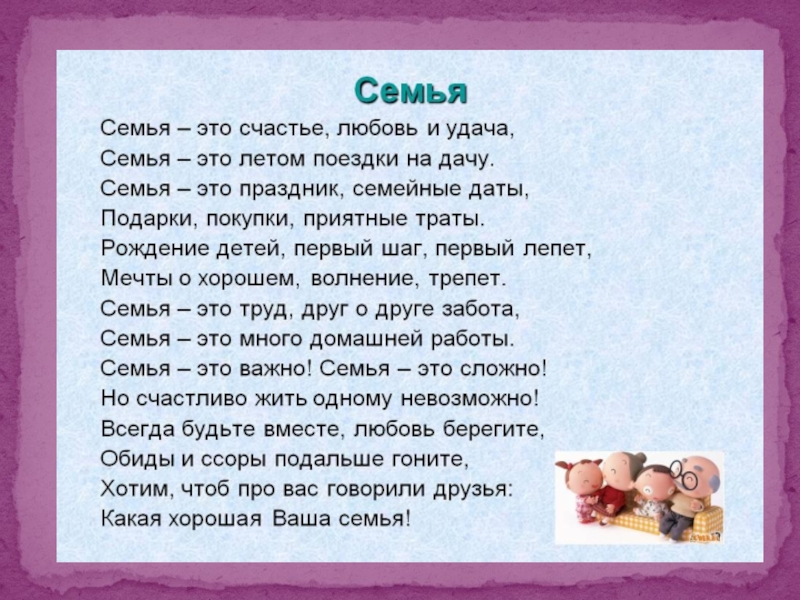 Презентация, доклад Моя семья окружающий мир (1 класс)