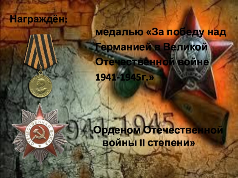 медалью «За победу над Германией в Великой Отечественной войне 1941-1945г.»