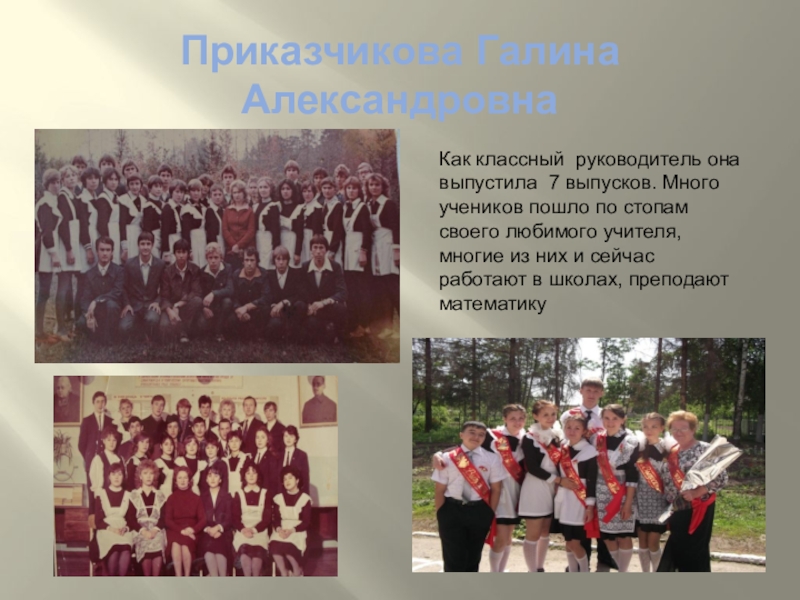 Как классный руководитель она выпустила 7 выпусков. Много учеников