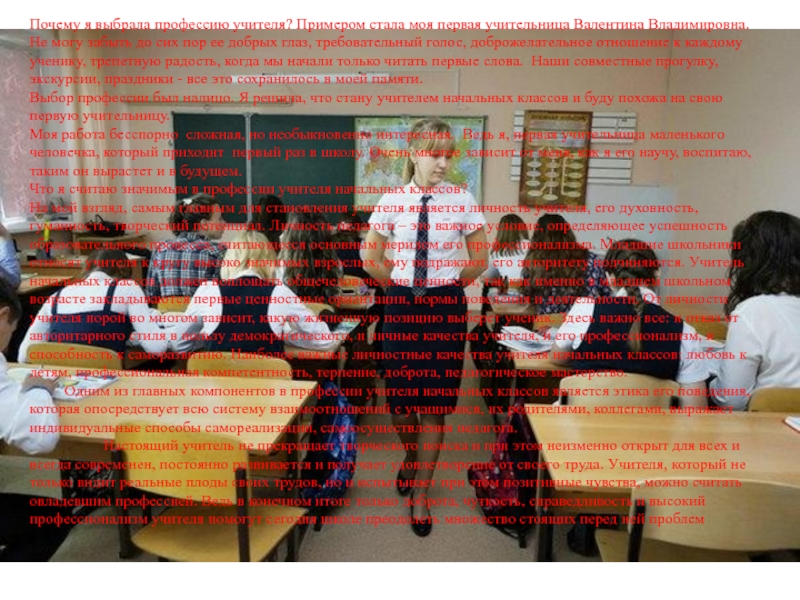 Почему я выбрала профессию учителя? Примером стала моя первая учительница Валентина
