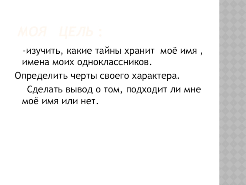 Сделать вывод о том, подходит ли мне моё имя или нет.