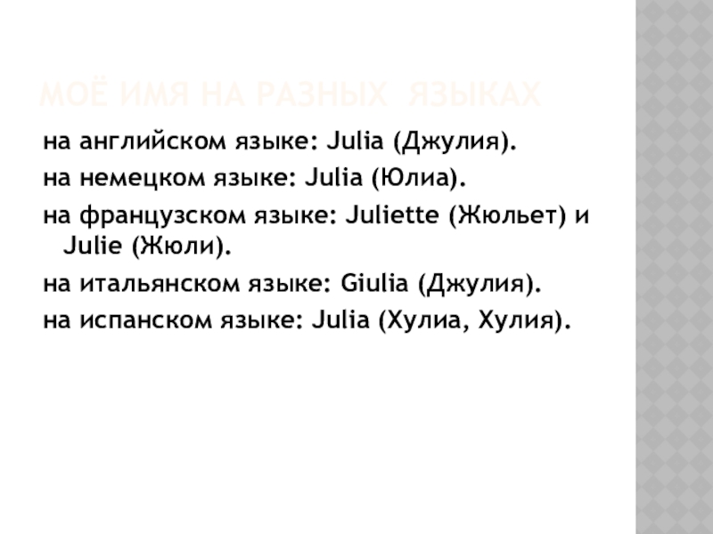 на французском языке: Juliette (Жюльет) и Julie (Жюли).