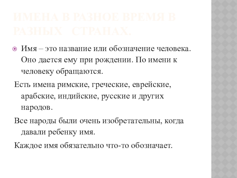 Есть имена римские, греческие, еврейские, арабские, индийские, русские и других народов.
