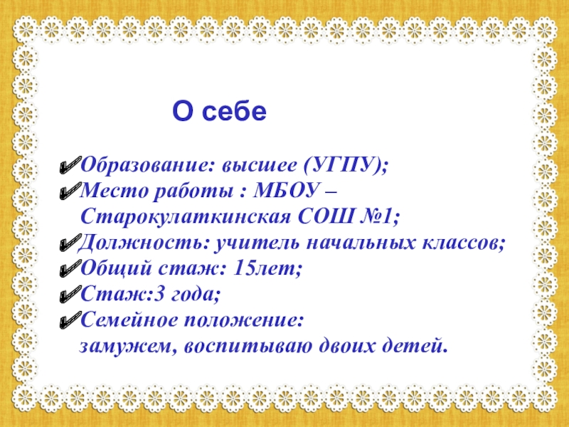 Учитель МБОУ - Старокулаткинская СОШ №1