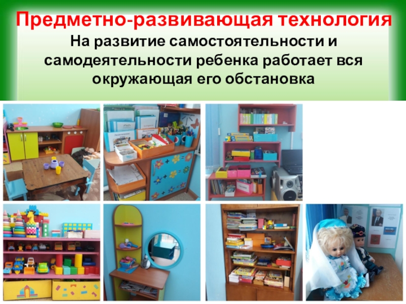 Слайд 6 Предметно-развивающая технология На развитие самостоятельности и самодеятельности ребенка работает вся окружающая его