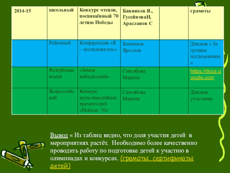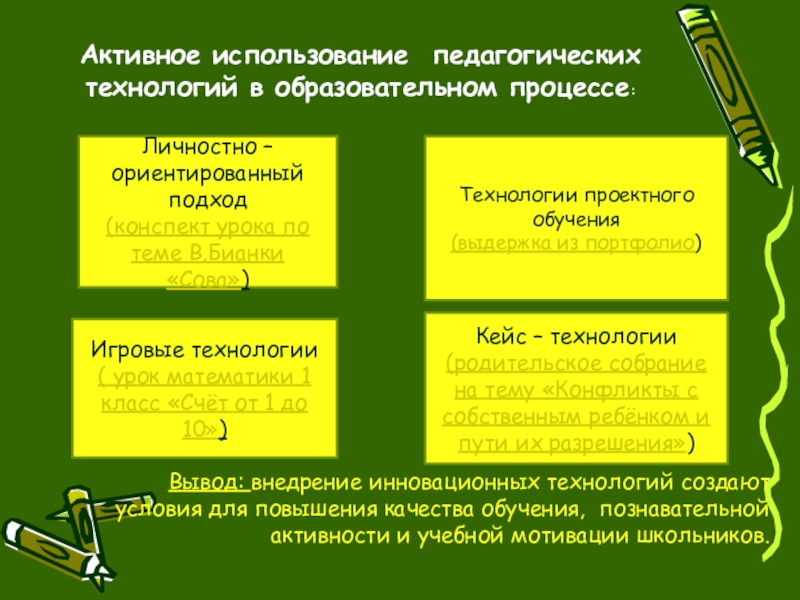 Вывод: внедрение инновационных технологий создают условия для повышения качества обучения, познавательной активности и учебной мотивации школьников.