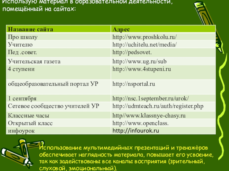 Это сайт презентаций, где можно хранить и обмениваться своими презентациями, докладами, проектами, шаблонами в формате PowerPoint с другими пользователями. Мы помогаем школьникам, студентам, учителям, преподавателям хранить и обмениваться учебными материалами.