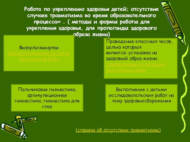 Выполнение с детьми исследовательских работ на тему здоровьесбережения