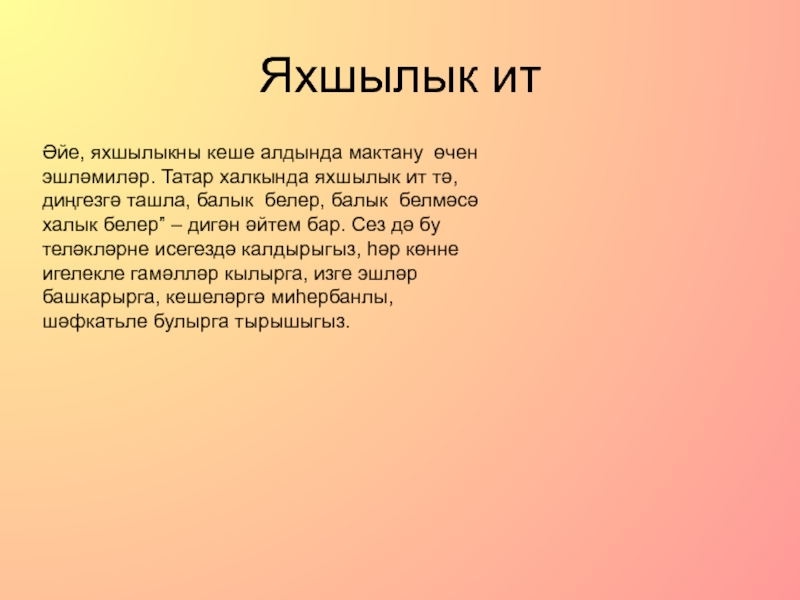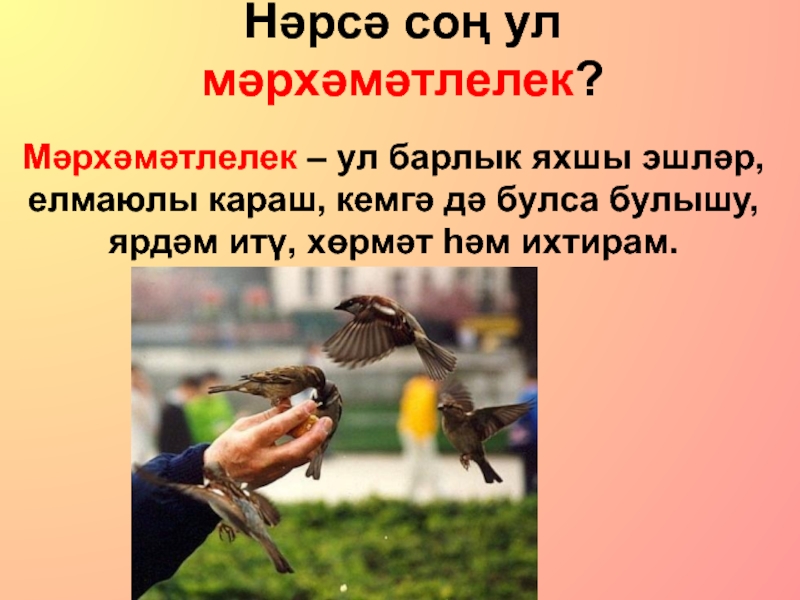 - Кешеләргә эшләгән яхшылык сиңа яхшылык булып кайта.