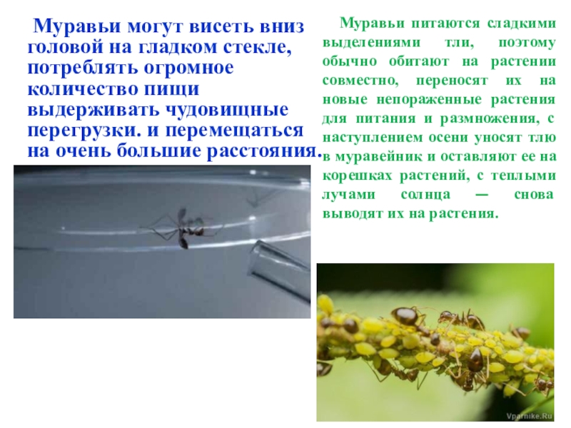Слайд 18 Муравьи могут висеть вниз головой на гладком стекле,