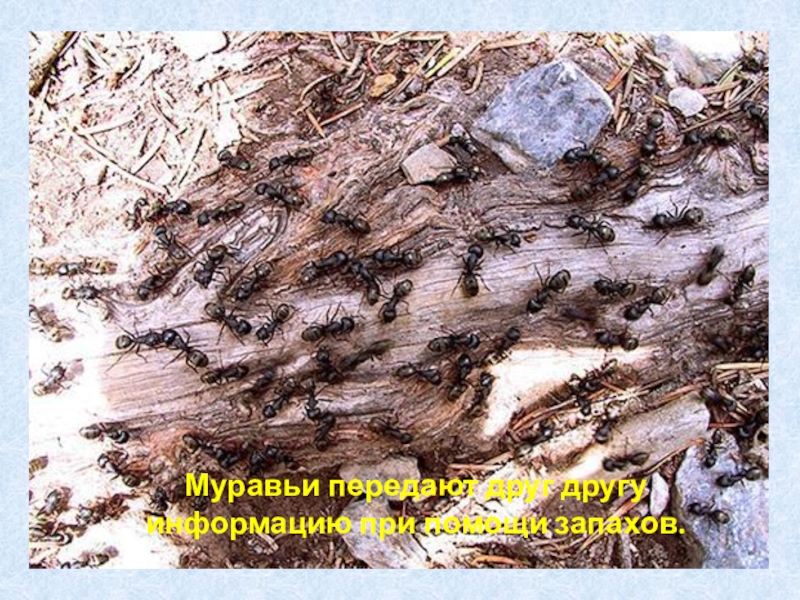 Слайд 19Муравьи передают друг другу информацию при помощи запахов.