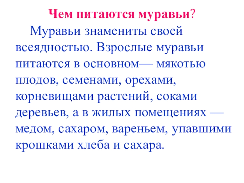Муравьи знамениты своей всеядностью. Взрослые муравьи