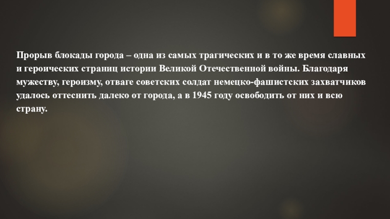 Слайд 17Прорыв блокады города – одна из самых трагических и в то
