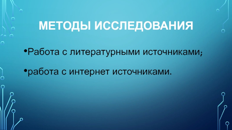 Методы исследованияРабота с литературными источниками;работа с интернет источниками.