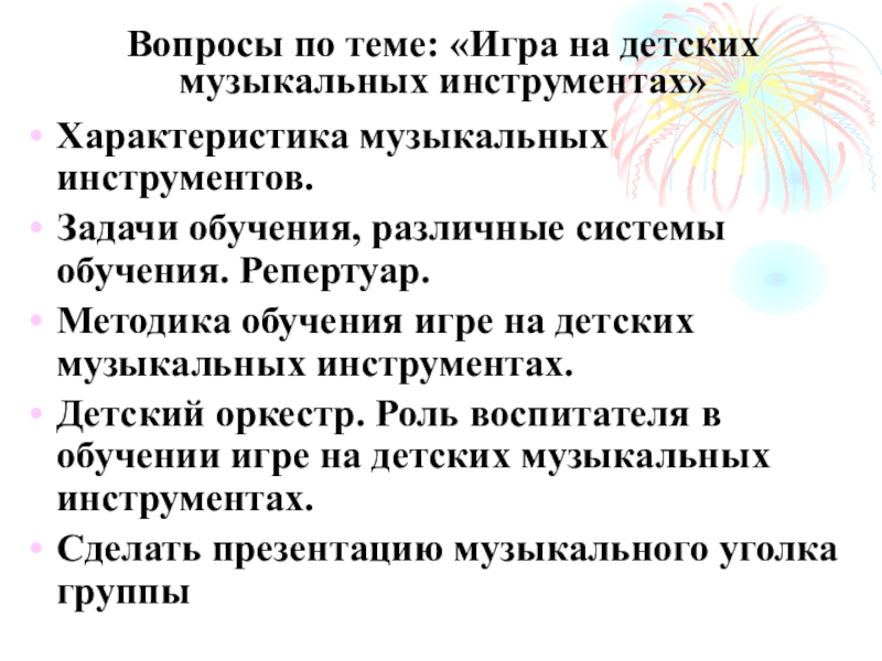 Вопросы по теме: «Игра на детских музыкальных инструментах»