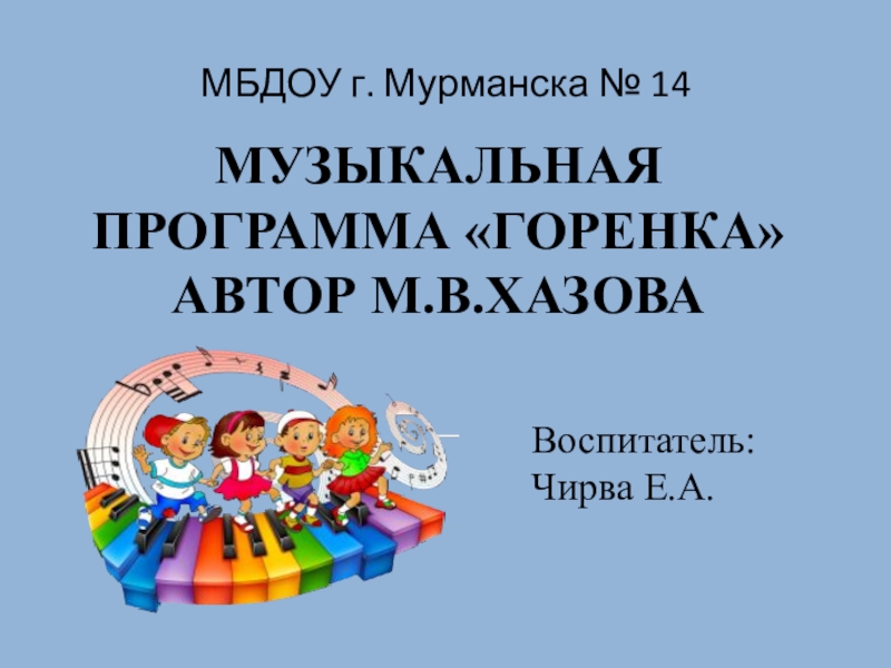 МУЗЫКАЛЬНАЯ ПРОГРАММА «ГОРЕНКА» АВТОР М.В.ХАЗОВАВоспитатель: Чирва Е.А.МБДОУ г. Мурманска № 14