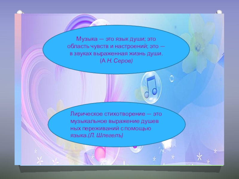 Лирическое стихотворение — это музыкальное выражение душевных переживаний с помощью языка.(Л. Шлегелъ)