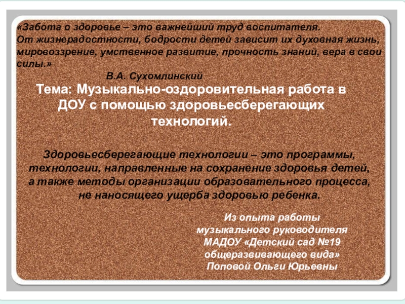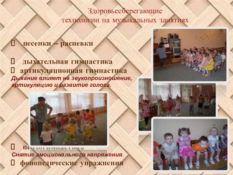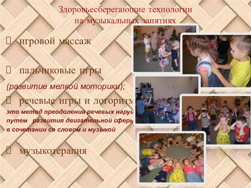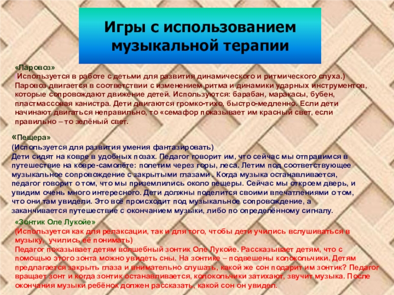 (Используется как для релаксации, так и для того, чтобы дети учились вслушиваться в музыку, учились её понимать)