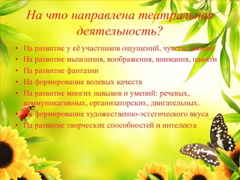 Основные задачи театрализованной деятельности