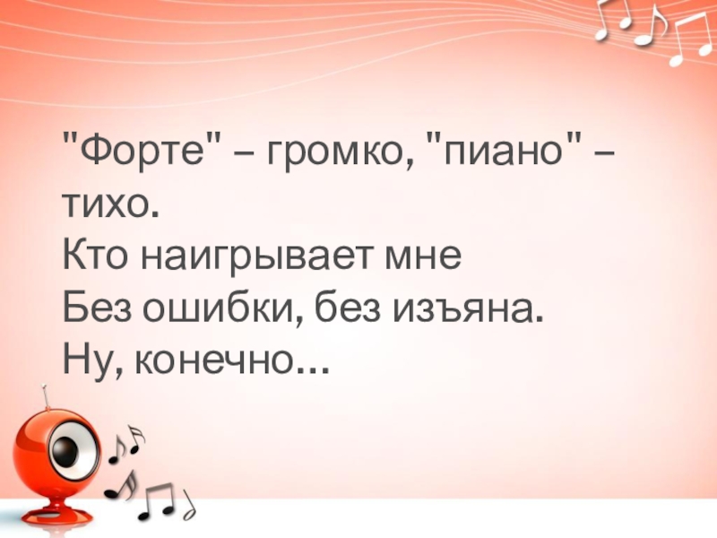 Слайд 12"Форте" – громко, "пиано" – тихо.