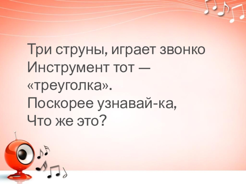 Три струны, играет звонкоИнструмент тот — «треуголка».Поскорее узнавай-ка,Что же это?