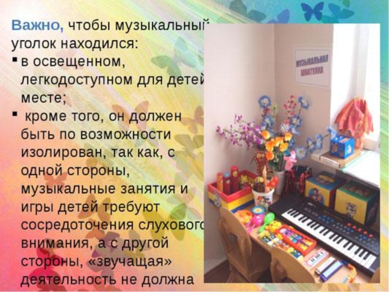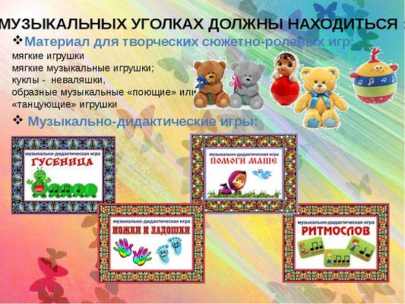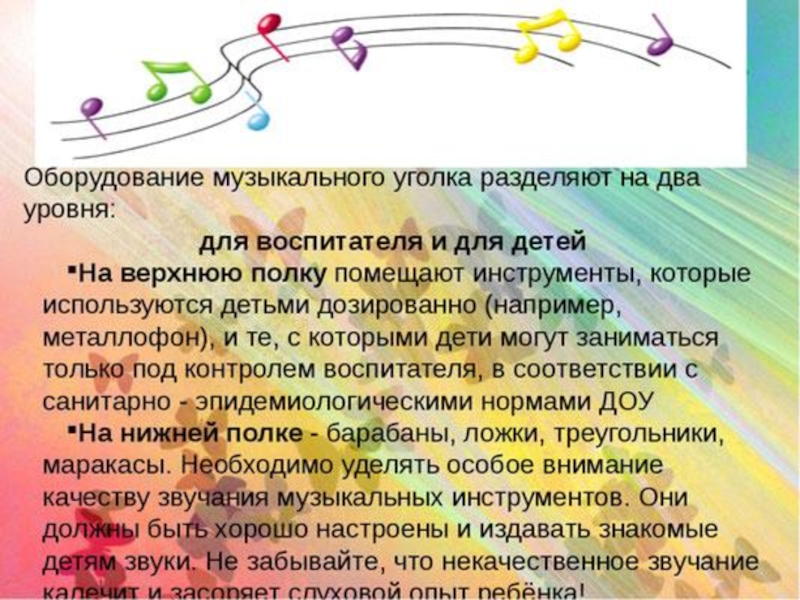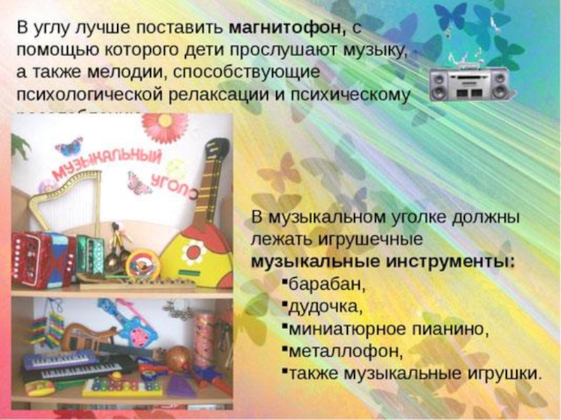 Презентация Музыкальные уголки для воспитателей ДОУ Детские презентации