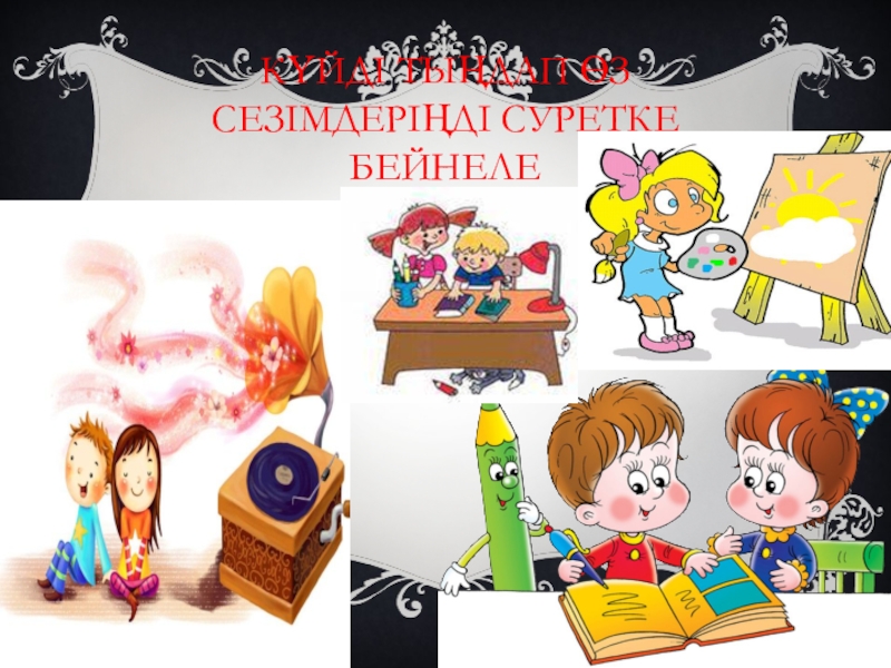 Слайд 10Күйді тыңдап өз сезімдеріңді суретке бейнеле