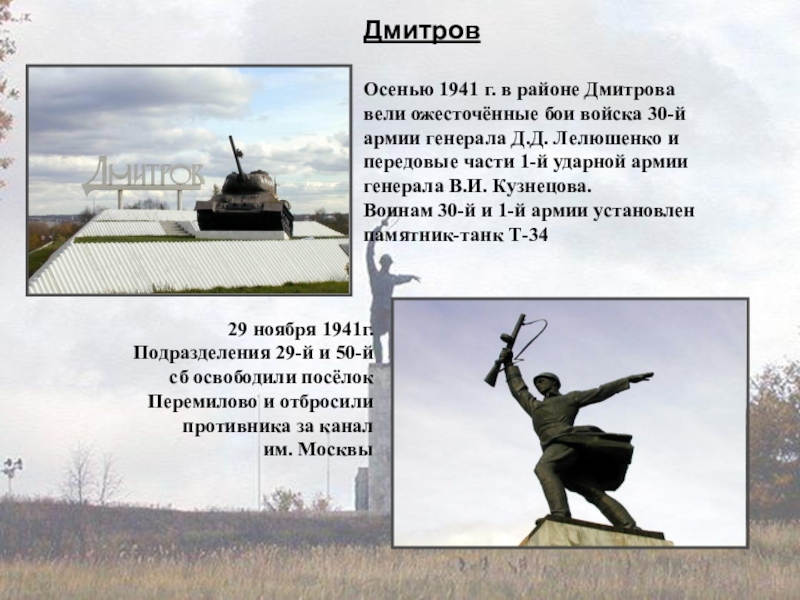 29 ноября 1941г. Подразделения 29-й и 50-й сб освободили посёлок Перемилово и отбросили противника за канал им. Москвы