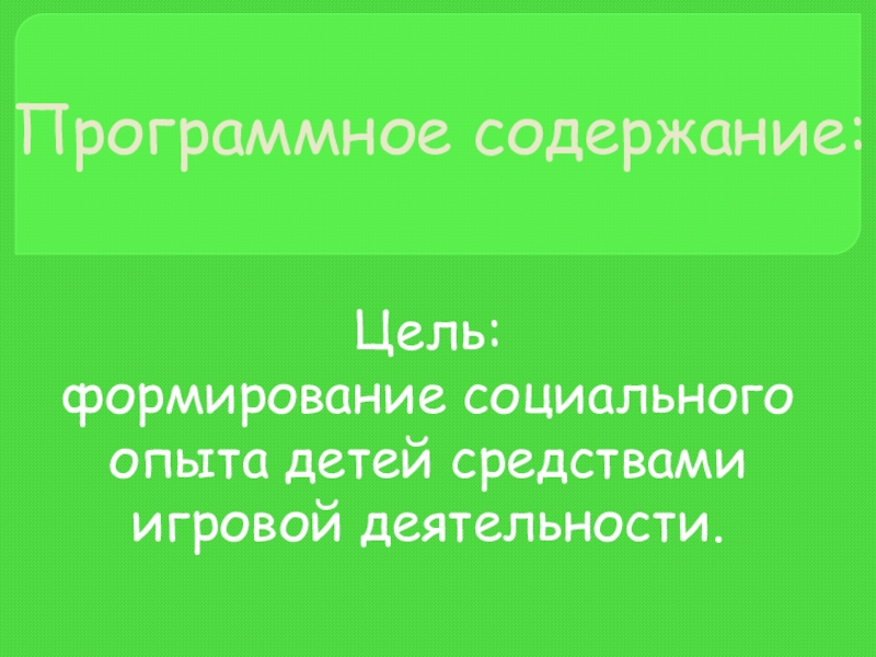 Программное содержание:Цель: формирование социального опыта детей средствами игровой деятельности.