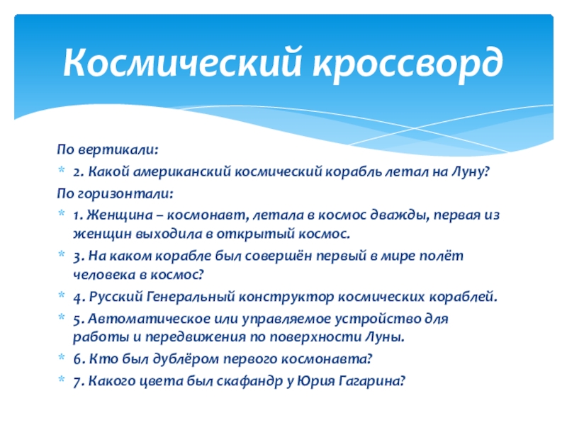 Космический кроссворд