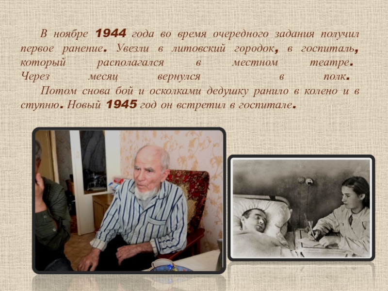 Слайд 7 В ноябре 1944 года во время очередного задания получил