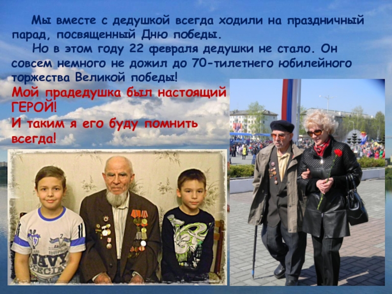 Но в этом году 22 февраля дедушки не стало. Он совсем немного не дожил до 70-тилетнего юбилейного торжества Великой победы!