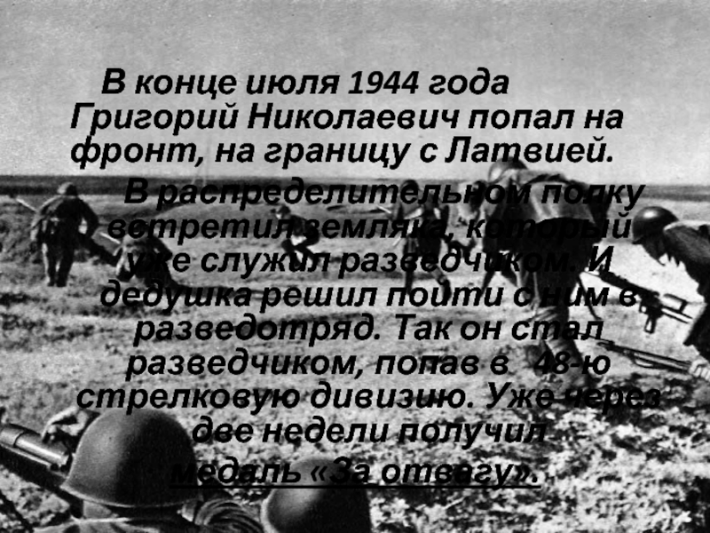 года Григорий Николаевич попал на фронт, на границу с Латвией.