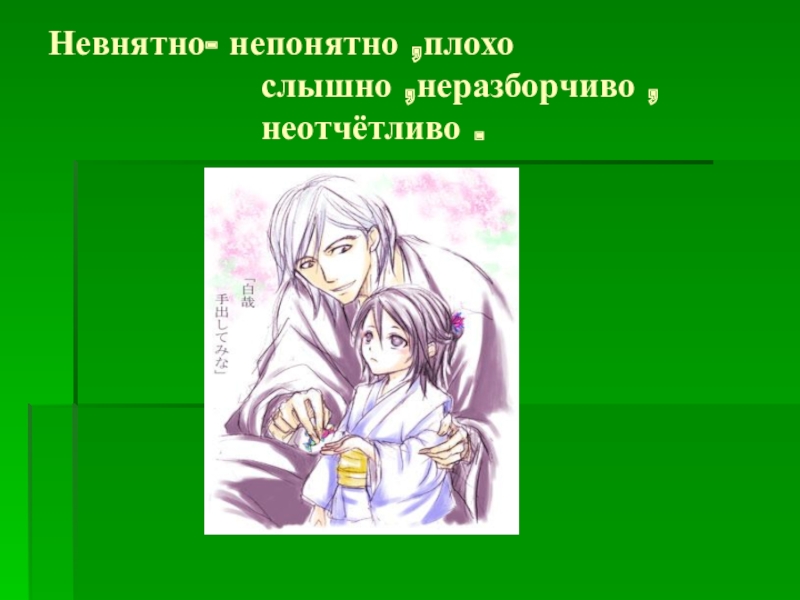 Невнятно- непонятно ,плохо          слышно ,неразборчиво ,