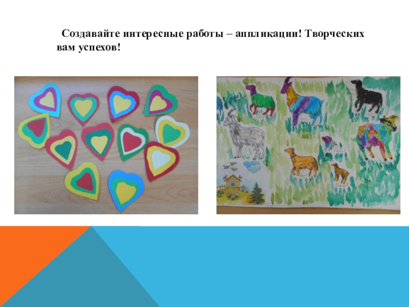 Слайд 9 Создавайте интересные работы – аппликации! Творческих вам успехов!
