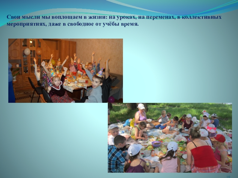 Слайд 10Свои мысли мы воплощаем в жизни: на уроках, на переменах, в