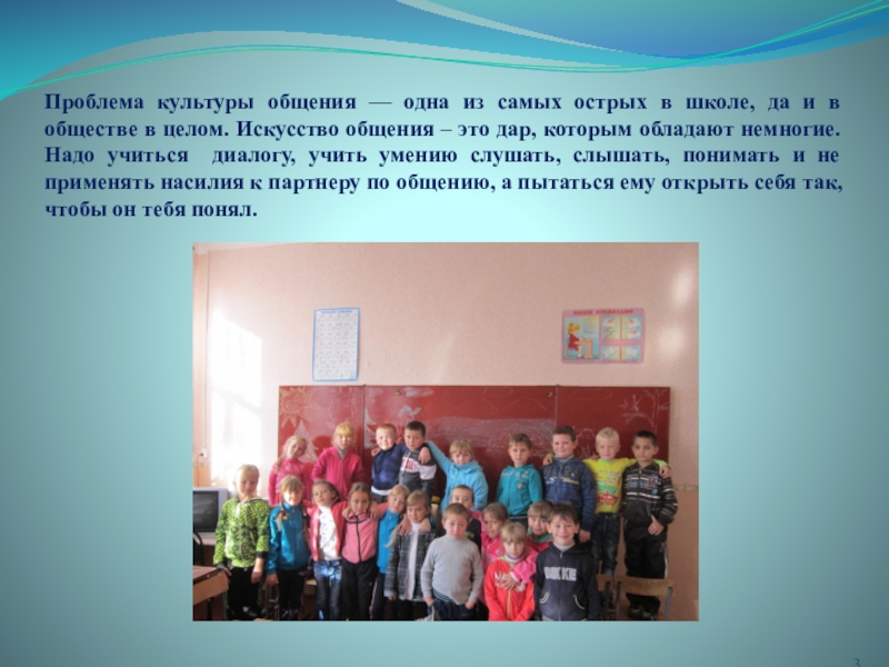 Слайд 3Проблема культуры общения — одна из самых острых в школе, да