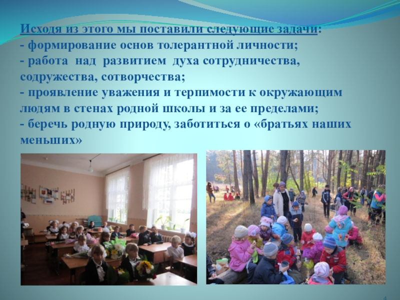 - формирование основ толерантной личности;