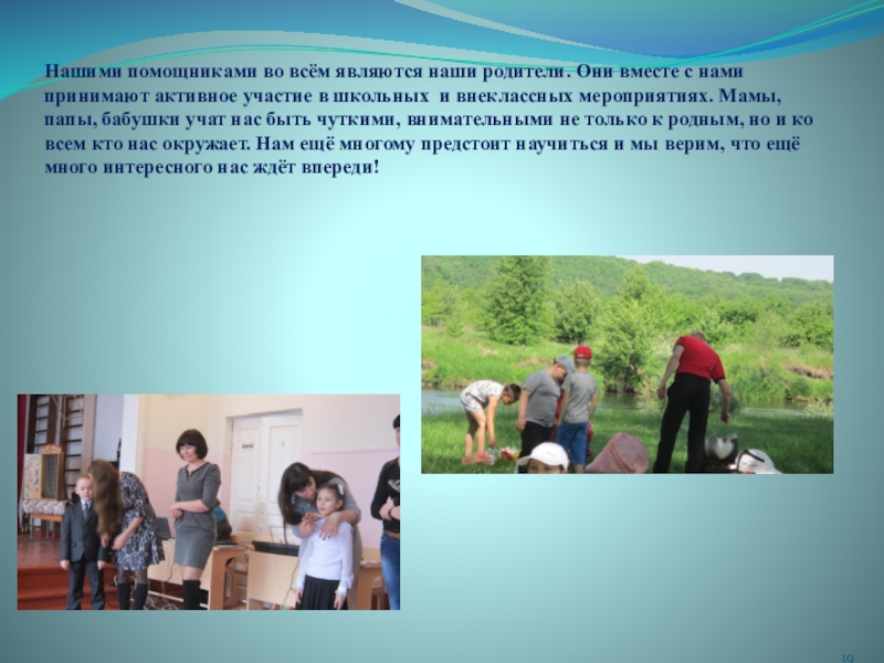 Слайд 19Нашими помощниками во всём являются наши родители. Они вместе с нами