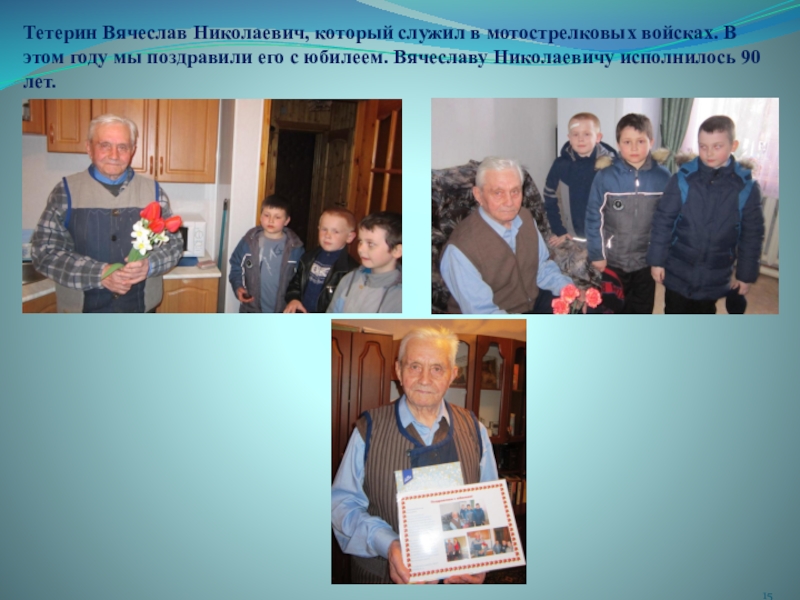 Слайд 15Тетерин Вячеслав Николаевич, который служил в мотострелковых войсках. В этом году
