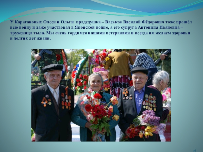 Слайд 16У Карагановых Олеси и Ольги прадедушка – Васьков Василий Фёдорович тоже