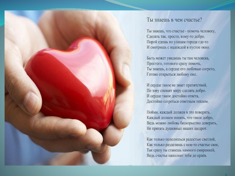 -Прислушиваясь к сердцу, мы делаем добрые дела. (В.Россомаха)