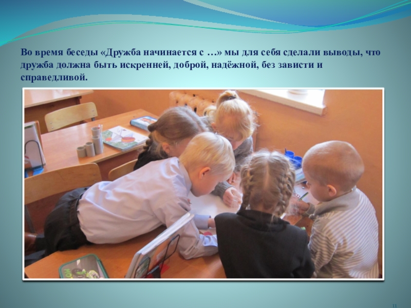 Слайд 11Во время беседы «Дружба начинается с …» мы для себя сделали