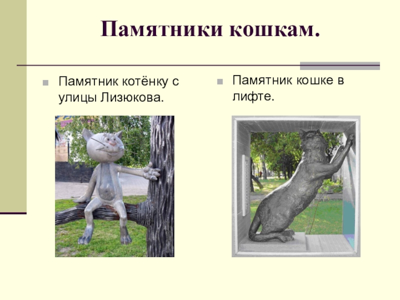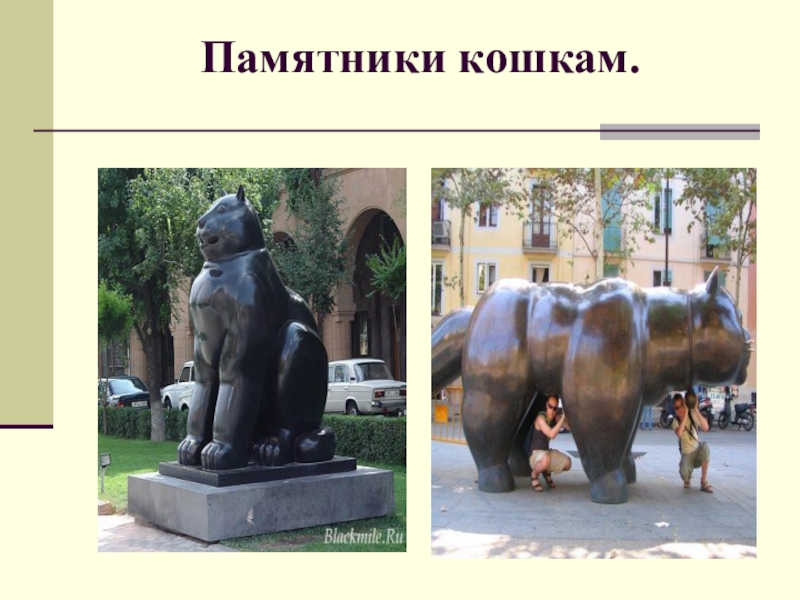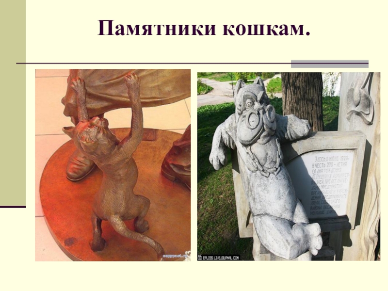 Слайд 24Памятники кошкам.