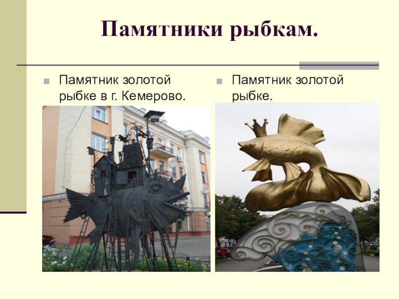 Слайд 41Памятники рыбкам.