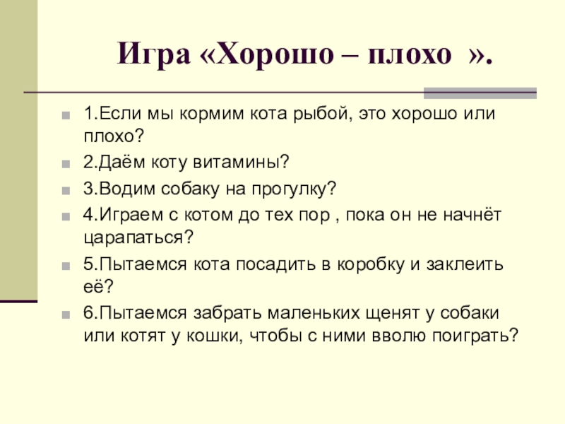 Слайд 5Игра «Хорошо – плохо ».
