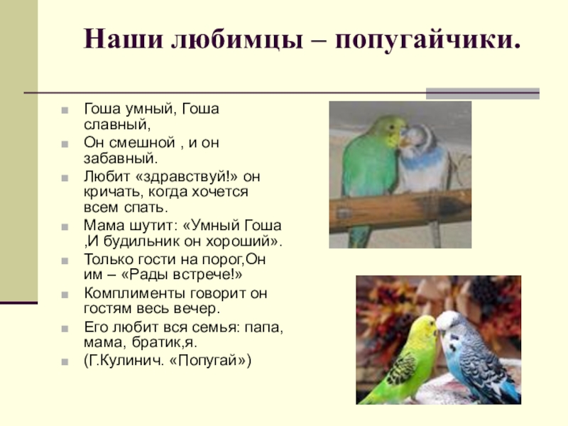 Слайд 6 Наши любимцы – попугайчики.