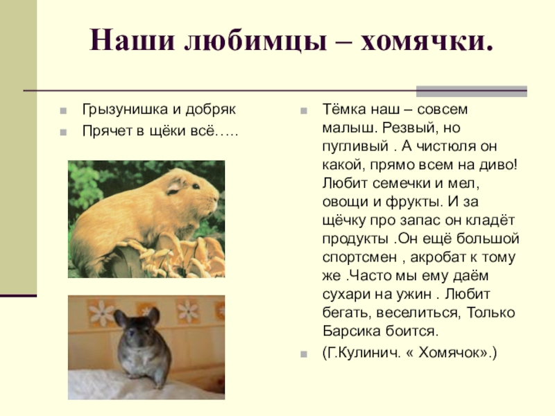 (Г.Кулинич. « Хомячок».)